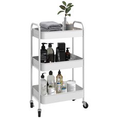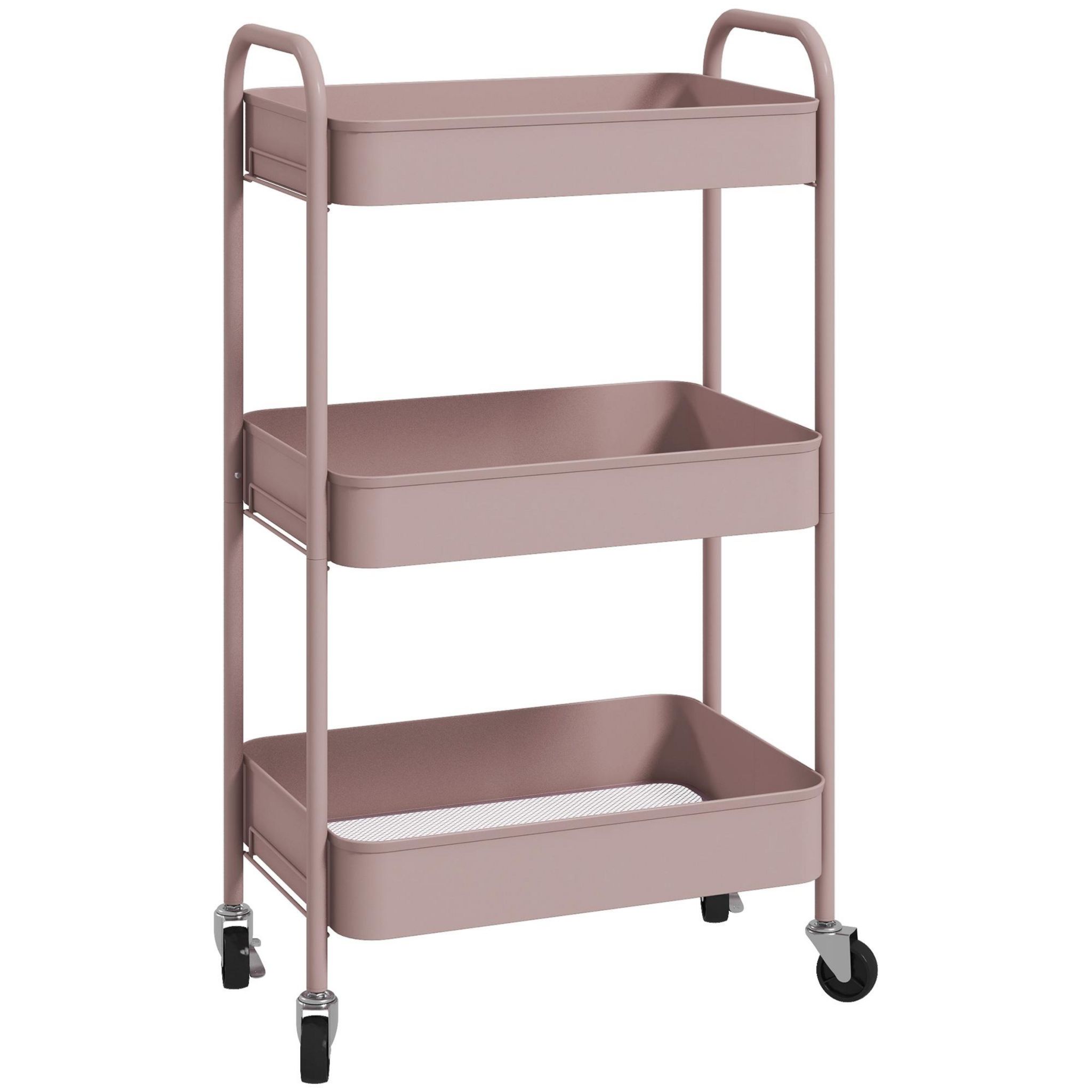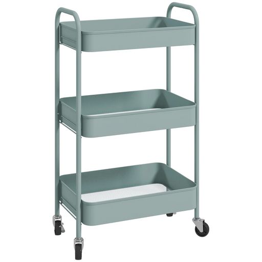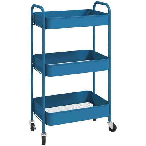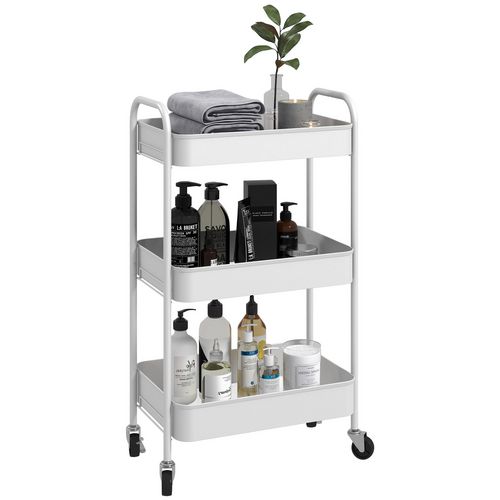 Ce superbe chariot de service à roulettes multi-rangements vous facilitera grandement la vie ! Équipé de 3 plateaux en métal ajouré vous permet de ranger aussi bien des produits de cuisine, des articles de salle de bain ou pour la chambre des enfants. Les 4 roulettes et les poignées permettent de la déplacer très facilement. Quoi de plus pratique ?