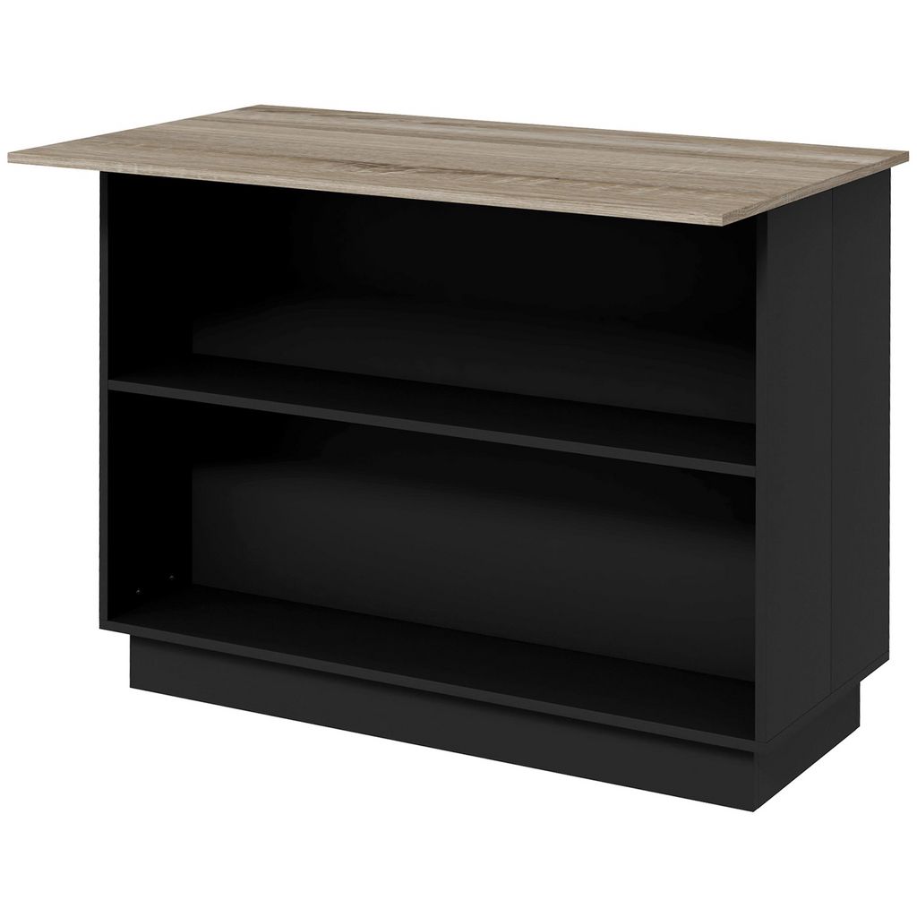 Desserte îlot de cuisine étagère 2 niches 2 placards effet bois noir