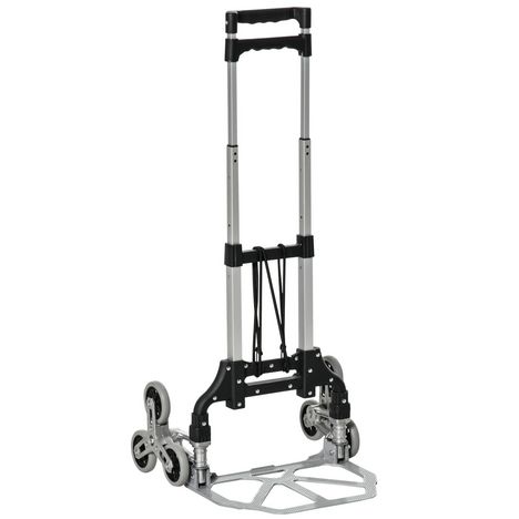 Diable pour escalier 6 roues diable repliable 70 Kg - poignée télescopique - chariot de manutention pliable alu. Noir