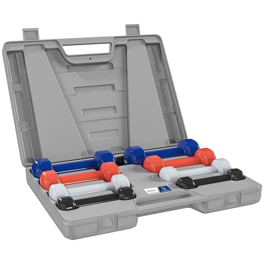 Ensemble d'haltères courtes total 10 Kg - collaboration Aosom.fr x FFHandball - paires de 0,5/1/1,5/2 Kg avec malette - métal PU multicolore