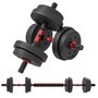Ensemble d'haltères courtes total 15 Kg - barres incluses - entraînement musculaire & haltérophilie - acier HDPE noir rouge