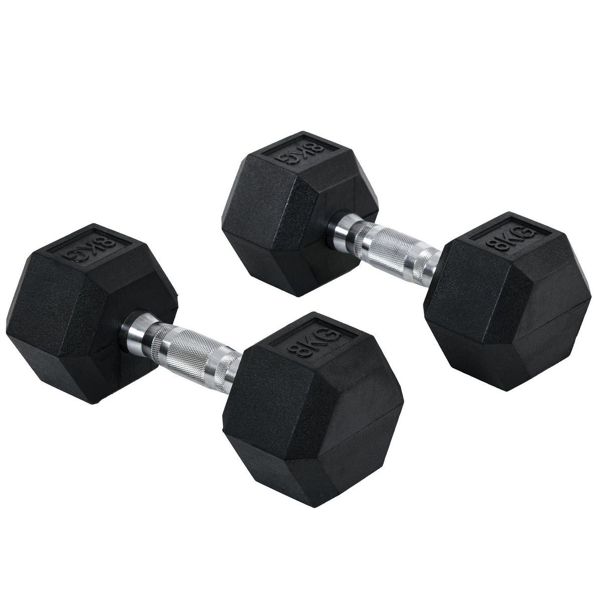 Ensemble d'haltères courtes total 16 Kg - entraînement musculaire & haltérophilie - acier caoutchouc noir