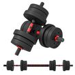 Ensemble d'haltères courtes total 20 Kg - barres incluses - entraînement musculaire & haltérophilie - acier HDPE noir rouge