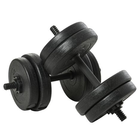 Ensemble d'haltères courtes total 20 Kg - barres incluses - entraînement musculaire & haltérophilie - acier HDPE noir