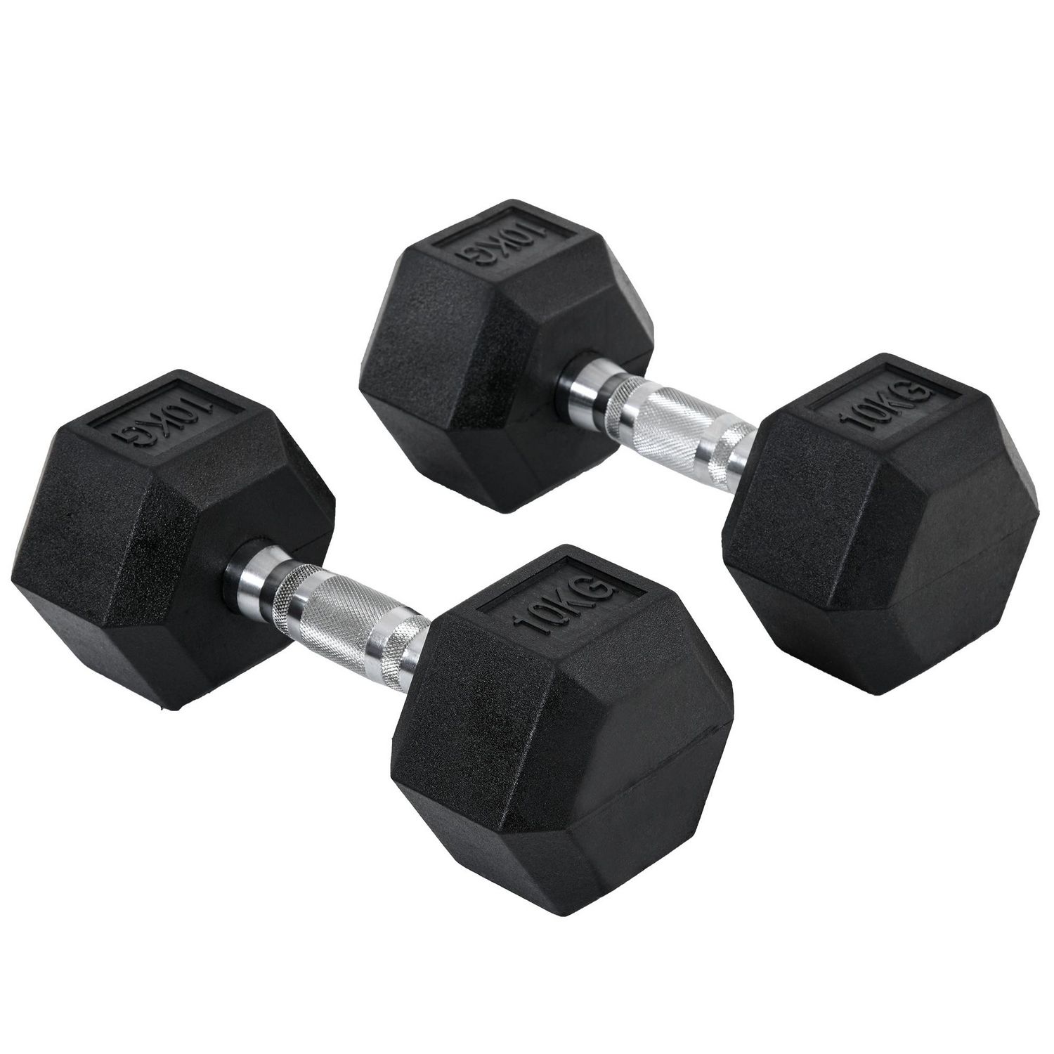 Ensemble d'haltères courtes total 20 Kg - entraînement musculaire & haltérophilie - acier caoutchouc noir
