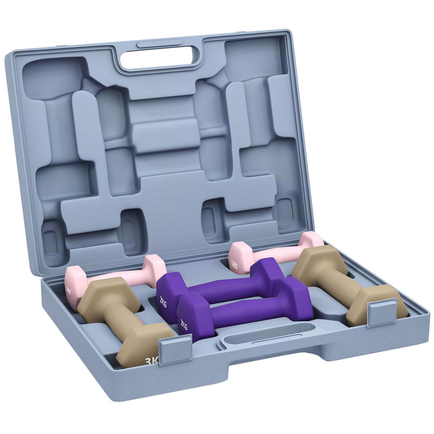 Ensemble d'haltères hexagonales total 12 Kg 6 pièces 1-3 Kg avec mallette multicolore
