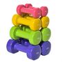 - Poids : 4 kg (violet), 3 kg (vert), 2 kg (jaune) et 1 kg (rose)