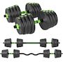 Ensemble d'haltères musculation multifonction 3 en 1 - haltères, Olympic barre, Curl EZ barre - total 30Kg - PVC vert noir