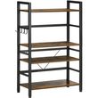 Étagère de cuisine design industriel - 4 étagères, crochets - châssis acier noir panneaux aspect bois vieilli