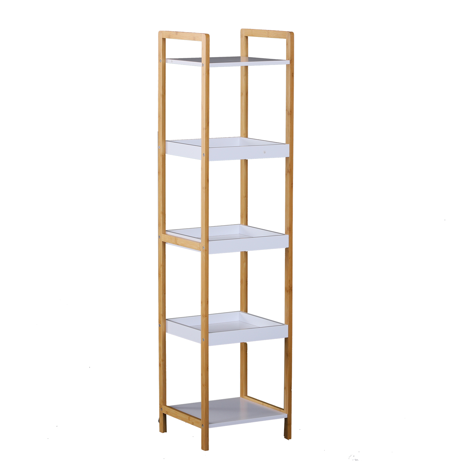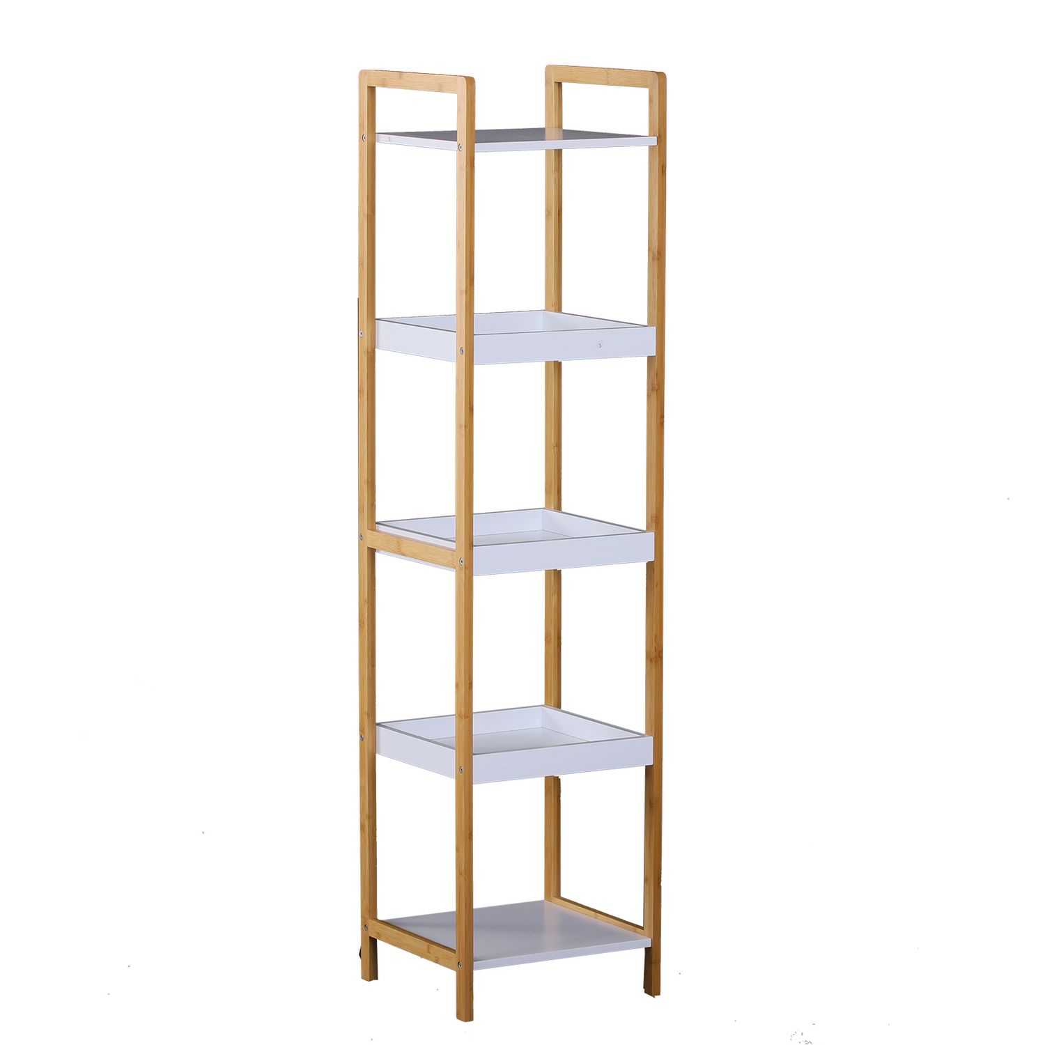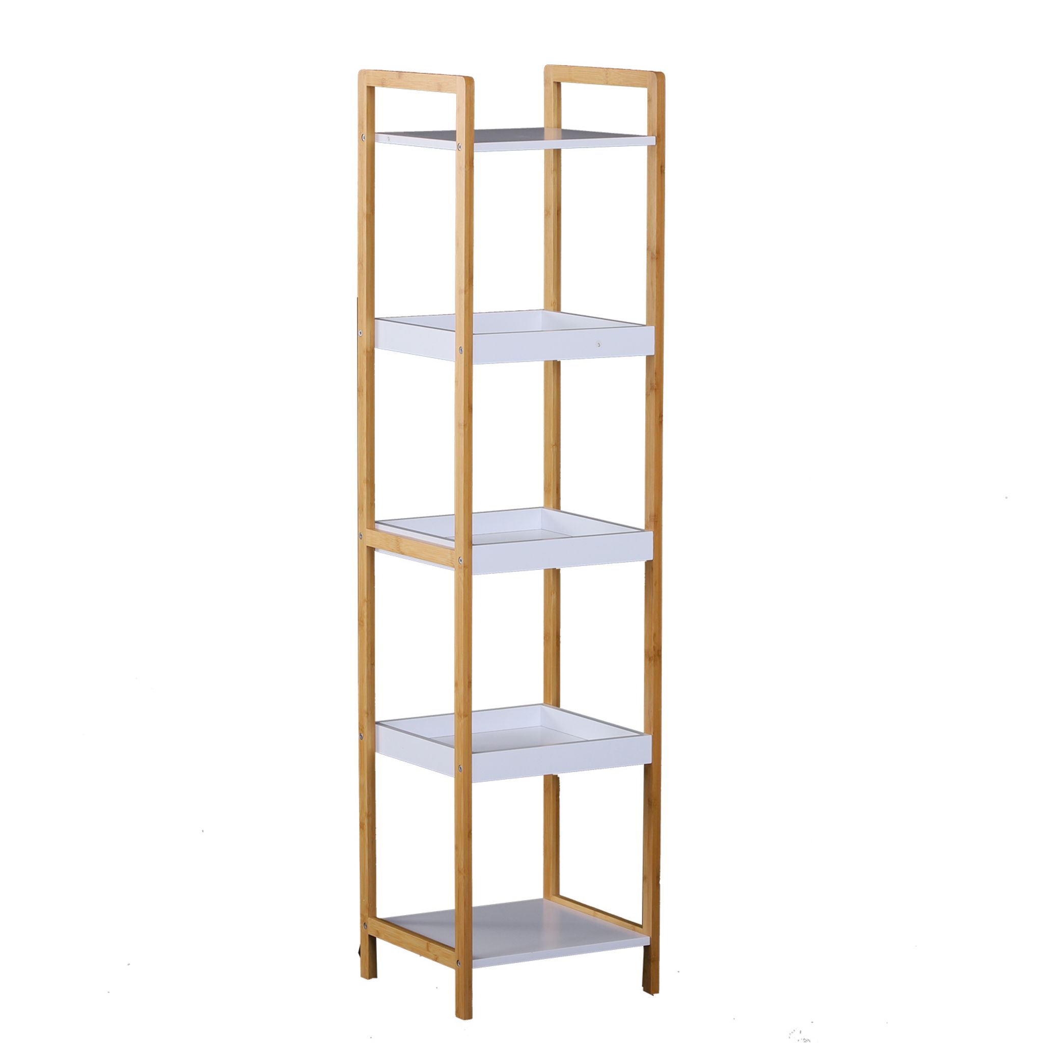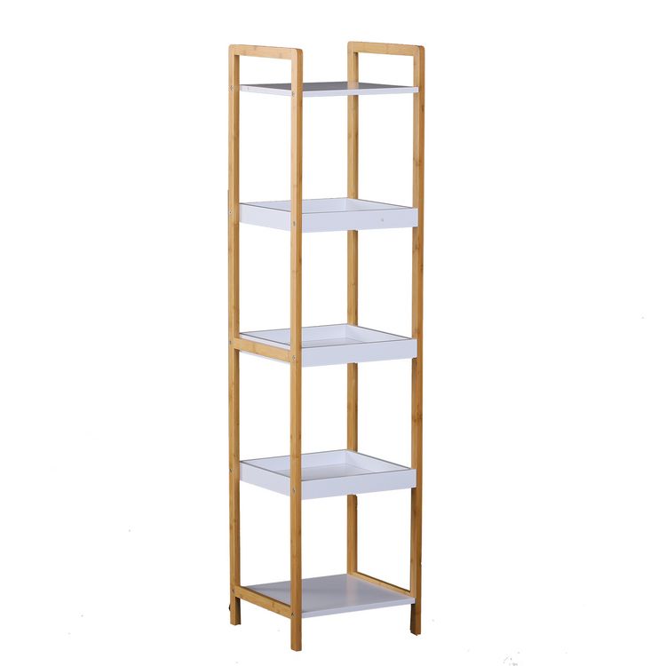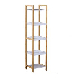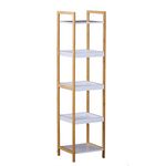 Etagère en bambou de salle de bain étagère debout 3 paniers + 2 étagères dim. 32L x 30l x 130H cm beige blanc