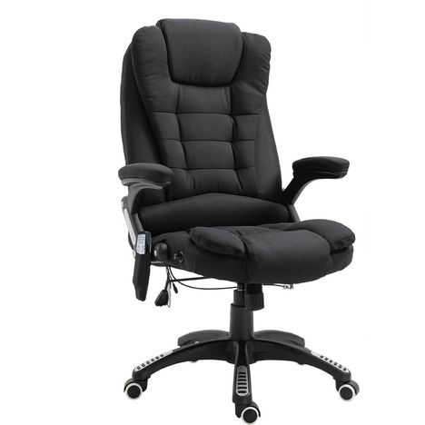 Fauteuil de bureau direction massant chauffant hauteur réglable dossier inclinable toile de lin noir
