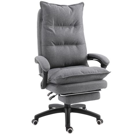 Fauteuil de bureau direction massant hauteur réglable dossier inclinable repose-pied intégré toile de lin gris chiné