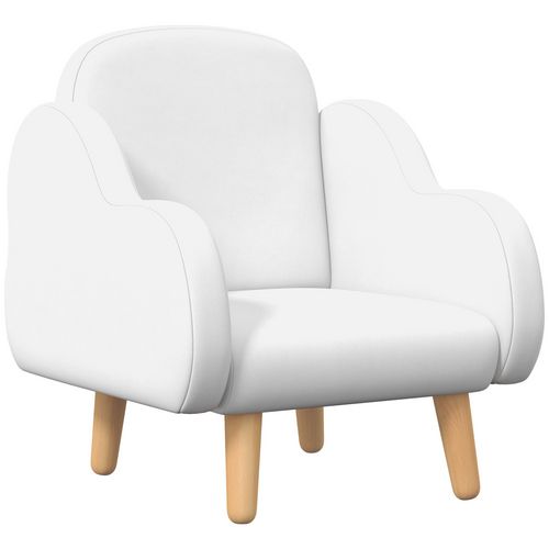Fauteuil enfant design scandinave nuage - piètement PP aspect bois clair tissu polaire blanc