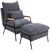 Fauteuil lounge style néo-rétro avec repose-pied - dossier inclinable - structure acier noir accoudoirs bois hévéa revêtement velours cotelé gris
