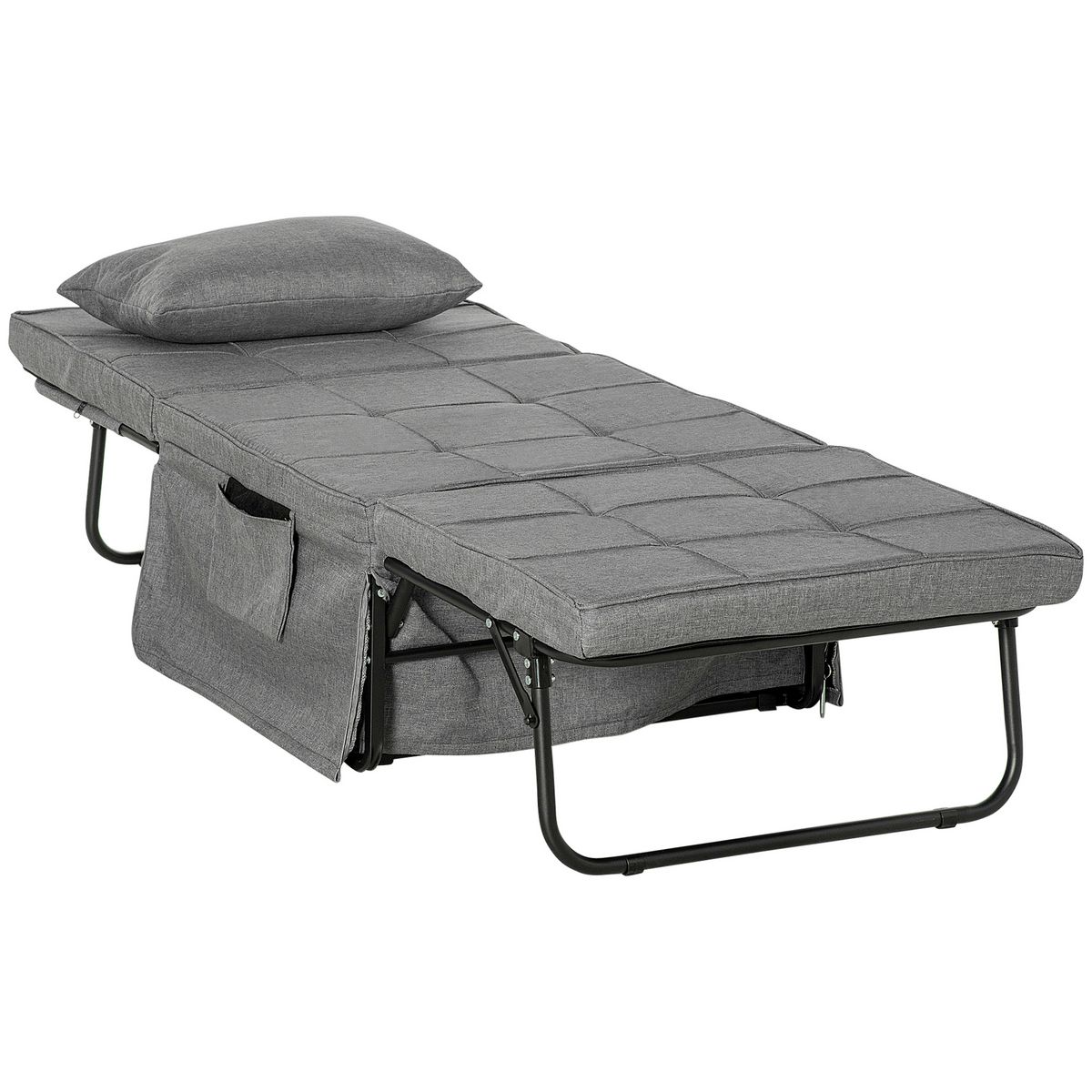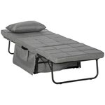 Fauteuil relax canapé pouf lit d'appoint 4 en 1 dossier inclinable 5 niveaux repose-pied rabattable châssis acier noir polyester gris