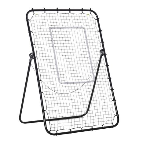 Filet de rebond de football pliable - inclinaison réglable 4 positions hauteur réglable - cible, piquets d'ancrage inclus - filet PE métal époxy noir