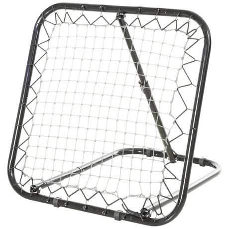 Filet de rebond de football pliable - inclinaison réglable 5 positions - dim. 84L x 78l x 78H cm - piquets d'ancrage inclus filet PE blanc métal époxy noir