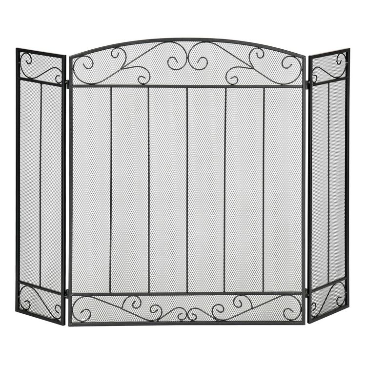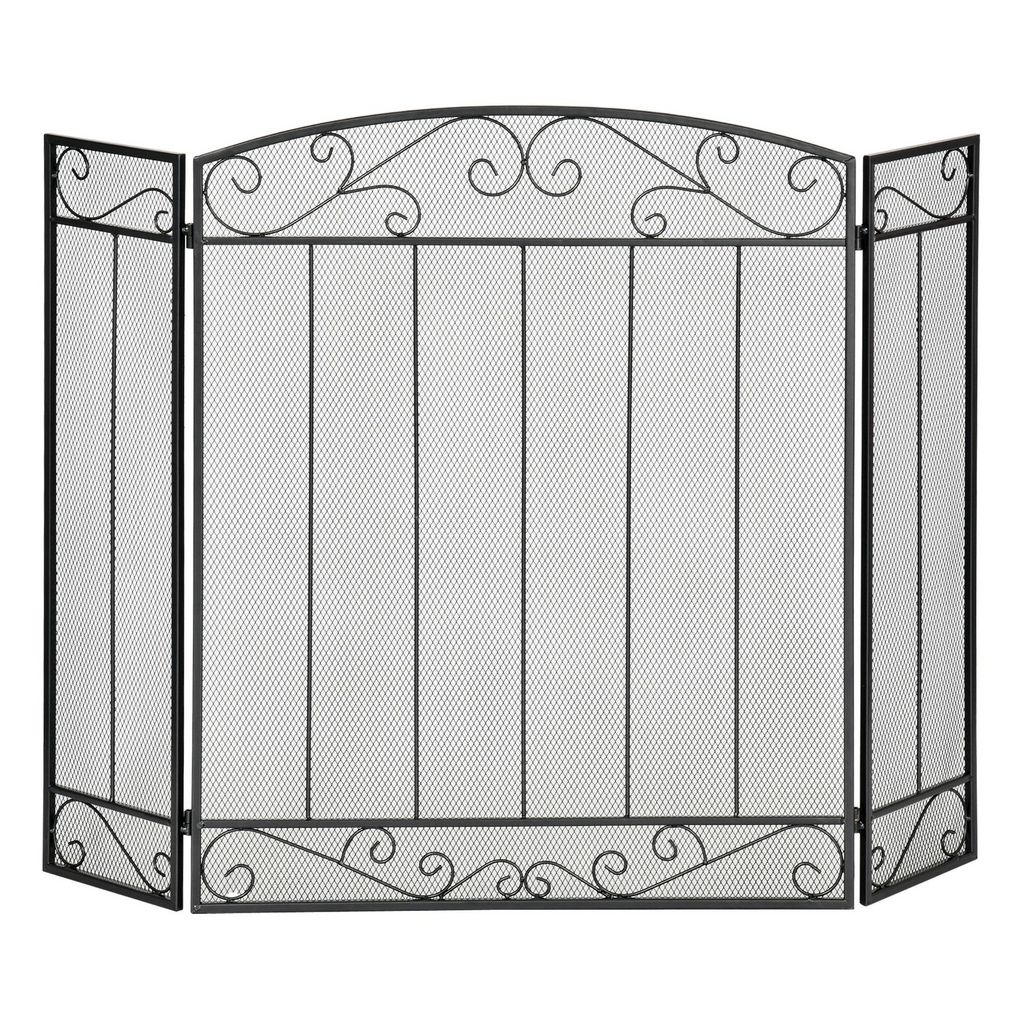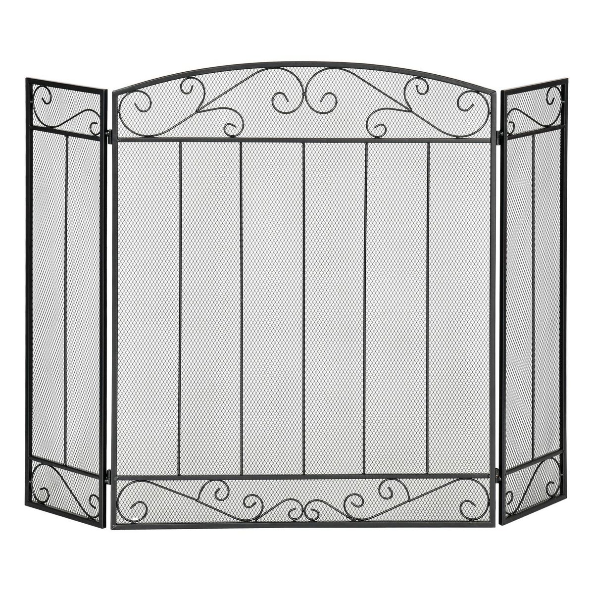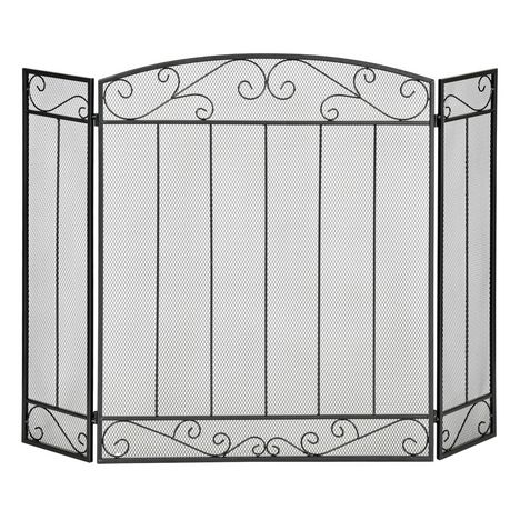 Grille de protection pour cheminée - pare-feu large pour cheminée ou poêle - pare-étincelles - barrière de sécurité - 3 volets pliables - acier métal noir