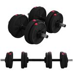 Haltères 2 en 1 réglables - haltères libres 15 Kg - barres incluses - entraînement musculaire & haltérophilie - noir rouge