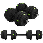 Haltères 2 en 1 réglables - haltères libres 25 Kg - barres incluses - entraînement musculaire & haltérophilie - noir vert
