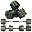 Haltères 2 en 1 réglables - haltères libres 30 Kg - barres incluses - entraînement musculaire & haltérophilie - noir vert