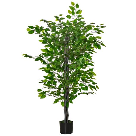 HOMCOM Arbre artificiel plante artificielle ficus H.1,35 m tronc branches liane lichen feuilles grand réalisme pot inclus