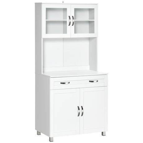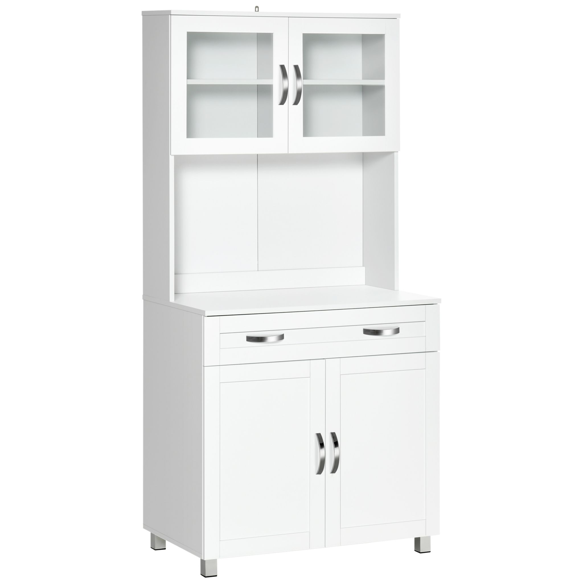 HOMCOM Armoire de cuisine contemporaine multi-rangement 2 placards portes grand tiroir coulissant panneaux MDF blanc