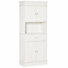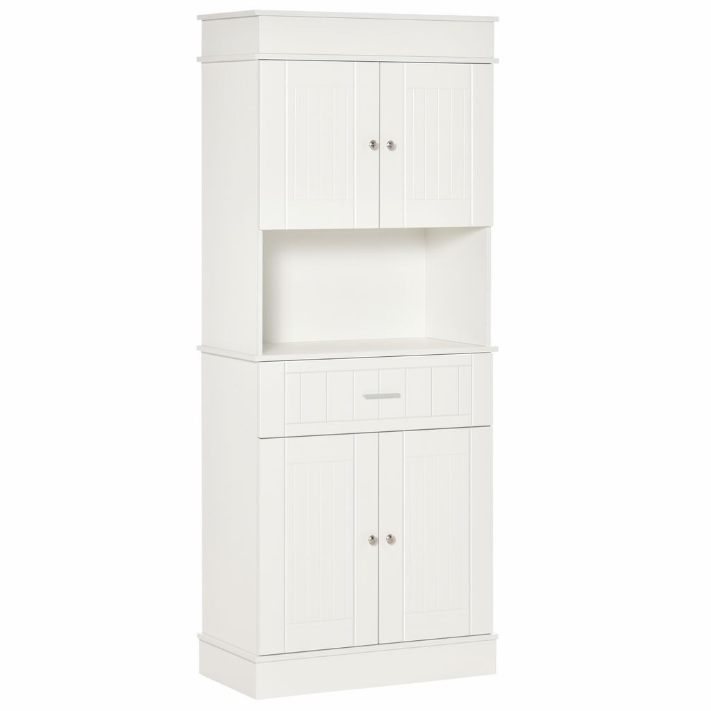 HOMCOM Armoire de cuisine contemporaine multi-rangement 4 portes tiroir coulissant et grand plateau dim. 74L x 39l x 183H cm panneaux particules MDF blanc