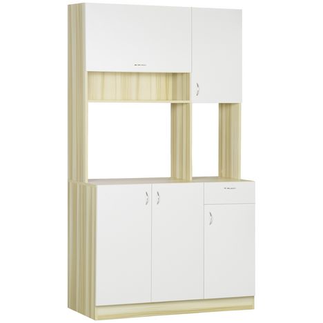 HOMCOM Armoire de cuisine contemporaine rangement- buffet haut - 5 portes, 1 tiroir, 3 niches - 102 x 48 x 180 cm