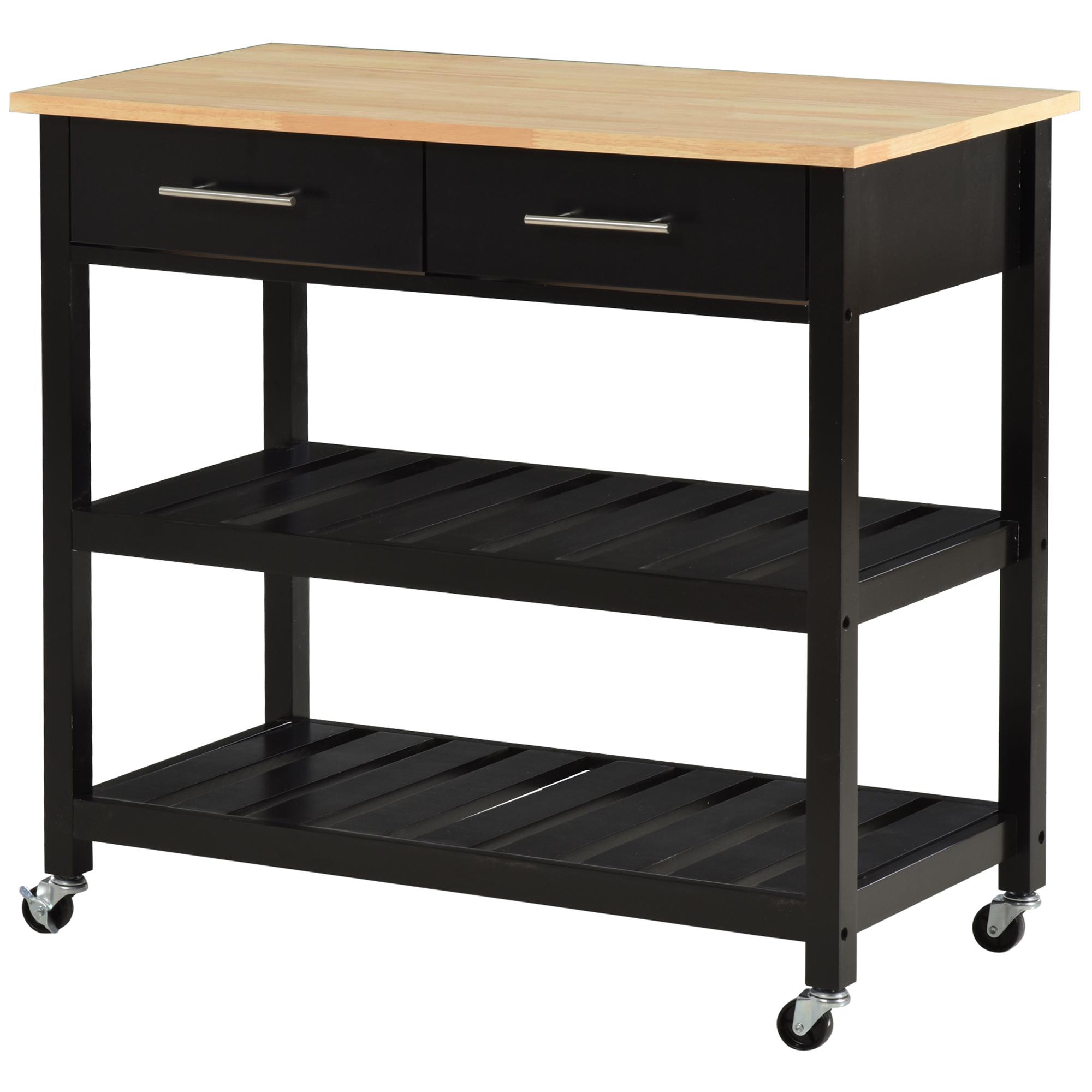 HOMCOM Chariot de service desserte de cuisine à roulettes 2 étagères 2 tiroirs noir bois naturel