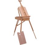 HOMCOM Chevalet d'artiste sur pieds pliable mallette de peinture chevalet avec rangement hauteur réglable bois de hêtre clair