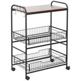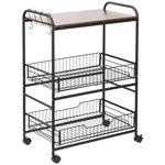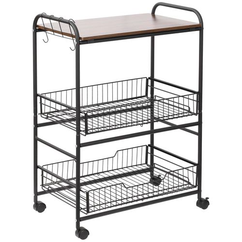 HOMCOM Desserte néo-rétro style industriel 2 paniers coulissants - métal noir plateau aspect bois de noyer