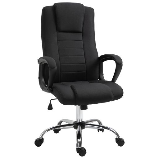 HOMCOM Fauteuil de bureau à roulettes chaise manager ergonomique pivotante hauteur réglable lin noir