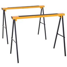 HOMCOM Lot de 2 tréteaux pliables compactes poignée transport dim. 100L x 50l x 76H cm surface antidérapante métal noir jaune