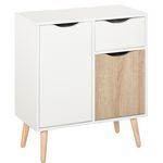 HOMCOM Meuble de rangement design scandinave 2 placards tiroir coulissant pieds bois massif pin panneaux particules blanc chêne clair