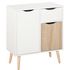 Fini le désordre ! Vous pourrez ranger correctement vos affaires grâce à ce superbe meuble style scandinave doté de 2 placards et d'un tiroir coulissant. Sa structure robuste (pieds en bois massif de pin, structure en panneaux de particules alte E1) et son dispositif anti-basculement permettent une utilisation en toute sécurité.