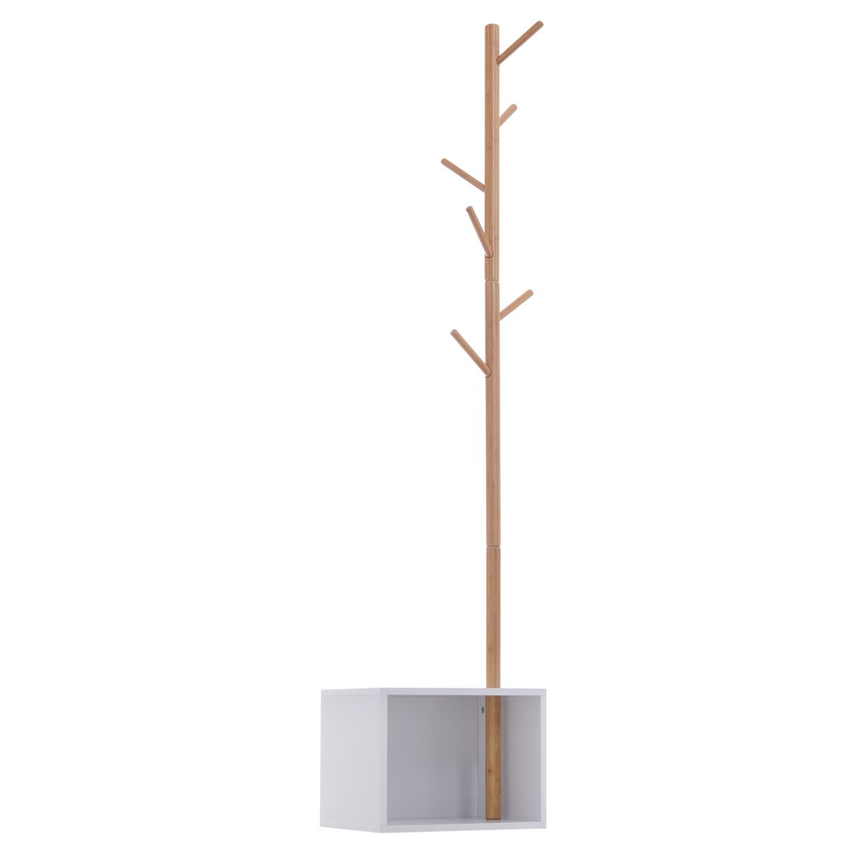 HOMCOM Meuble rangement porte-manteaux 2 en 1 design contemporain cosy dim. 40L x 30l x 180H cm MDF blanc bois massif bambou
