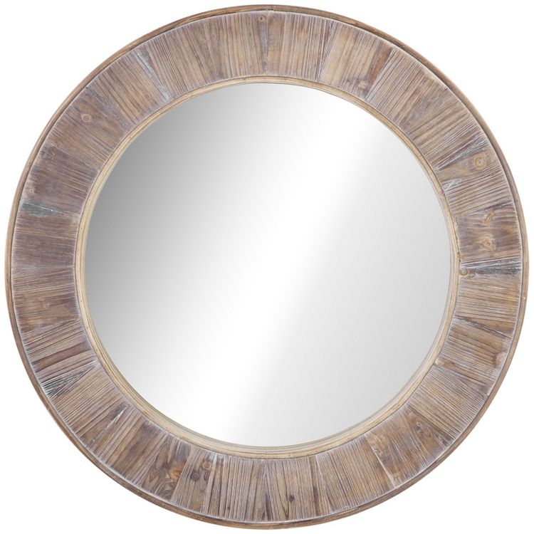 HOMCOM Miroir rond mural en bois de pin style naturel Ø 79 cm