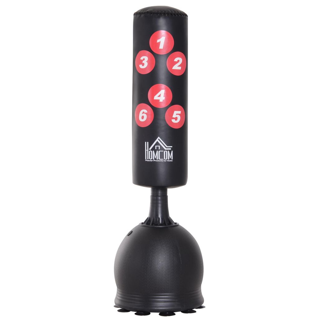 HOMCOM Sac de frappe boxe sur pied punching ball autoportant adulte enfant H1,65 m cibles de touche ventouses antidérapantes noir rouge