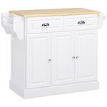 Cet îlot de cuisine HOMCOM a un design parfait pour s'adapter à tous les styles de décoration. Il est équipé de 2 tiroirs, de placards avec étagères réglables, d'une étagère à épices et d'un rail de suspension, où vous pouvez ranger tous vos ustensiles et fournitures de cuisine. Grâce à ses roulettes, vous pouvez le déplacer facilement de la cuisine à la salle à manger et inversement.