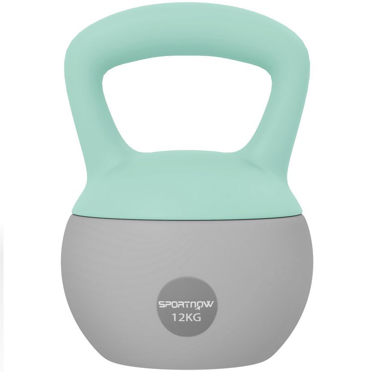 Kettlebell 12 Kg - prise ergonomique - entraînement musculaire & haltérophilie - PVC gris vert d'eau