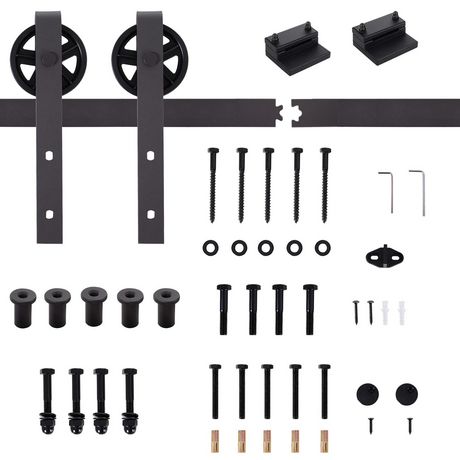 - Kit complet composé de 2 roulettes, un rail et de toutes les pièces de quincaillerie nécessaire au montage