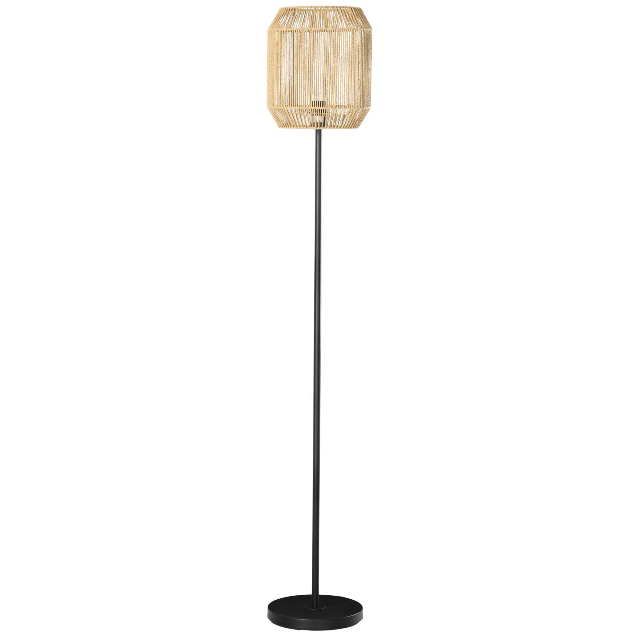 Lampadaire aspect cannage style cosy 40 W max. H.158 cm piètement mât métal noir abat-jour corde papier tressé main