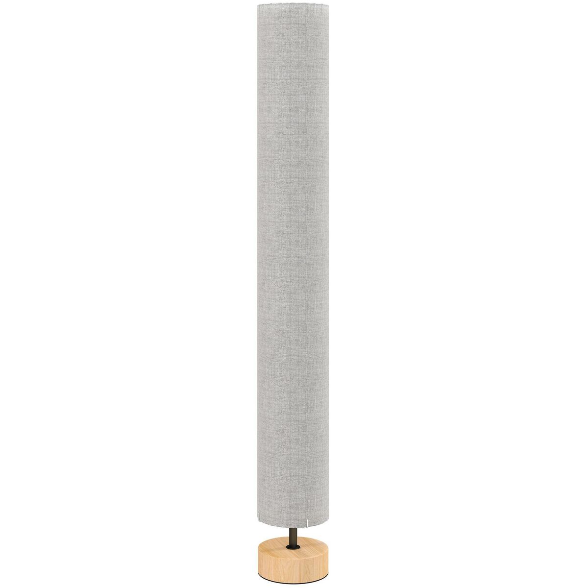 Lampadaire colonne sur pied bois contemporain H.120 cm abat-jour lin gris