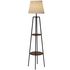 Lampadaire design contemporain 2 étagères intégrées 40 W 166H cm métal noir MDF aspect bois de noyer tissu beige