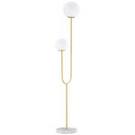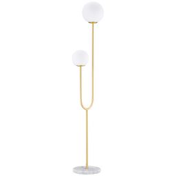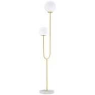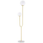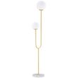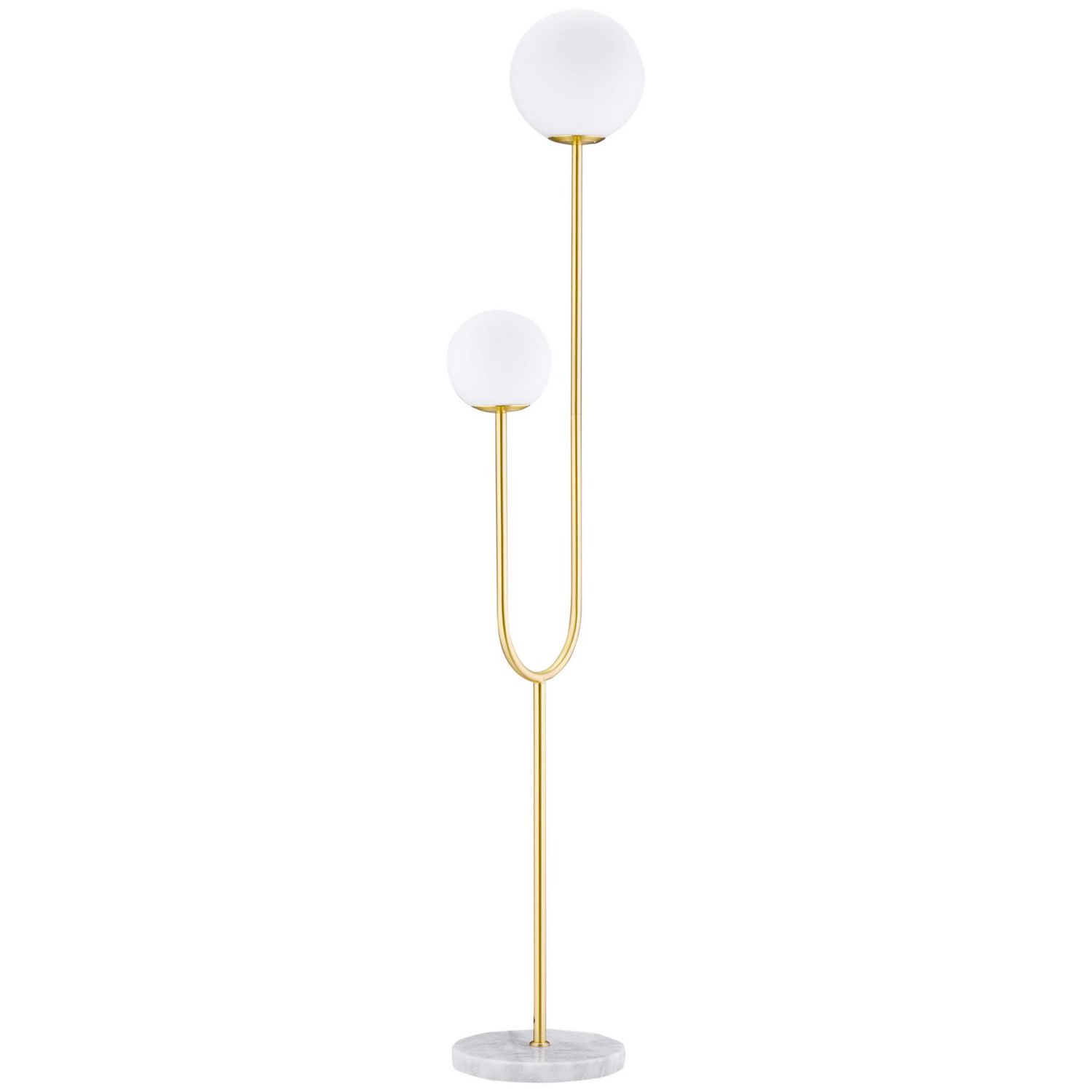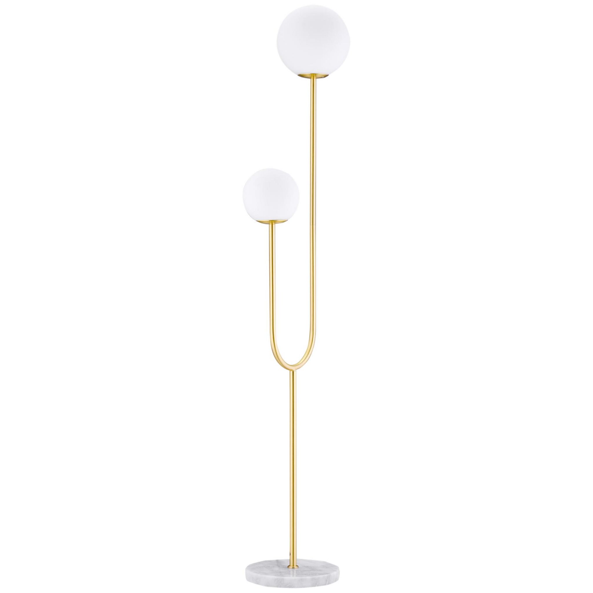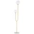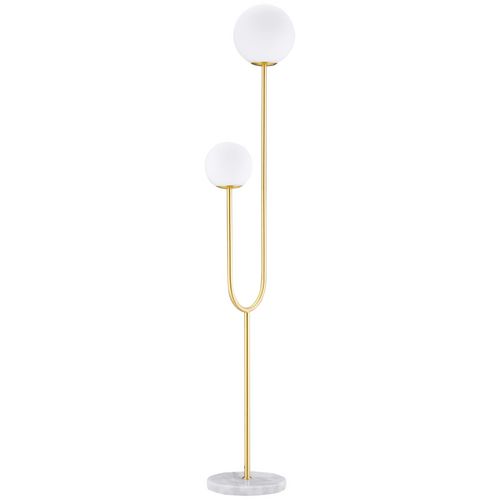 Lampadaire design néo-rétro 2 boules verre blanc opaque max. 25 W piètement marbre blanc acier doré