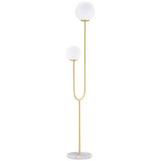 Simple, élégant et pratique, ce lampadaire possède un pied en métal fin et raffiné, une base ronde aspect marbre stable et deux abat-jours globes en verre dépoli qui tamisera naturellement l'intensité lumineuse. Son pied haut à la finition métallisée dorée ajoutera une pointe d'élégance dans votre déco.