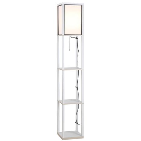 Lampadaire étagère lampe étagère 26L x 26l x 160H cm 3 étagères 4 niveaux MDF blanc