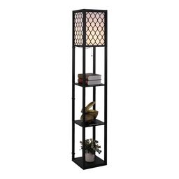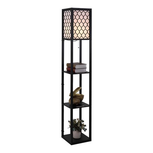 Ce lampadaire étagère est une conception 2 en 1, vous offrant à la fois de la lumière et des espaces de rangement. Ce meuble vous permet d'afficher et d'organiser vos accessoires de décoration ainsi que vos livres grâce à ses 3 étagères. Son coloris noir avec abat-jour en tissu motif nid d'abeille noir sur fond blanc ajoutera une touche supplémentaire d'originalité et modernité à votre intérieur