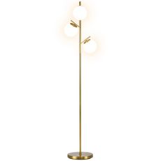 Simple et pratique, ce lampadaire style néo-rétro possède un pied en métal fin et raffiné, une base ronde stable et 3 abats-jours boules en verre dépoli qui tamisera naturellement l'intensité lumineuse. Son pied haut à la finition métallisée dorée ajoutera une pointe d'élégance dans votre déco.